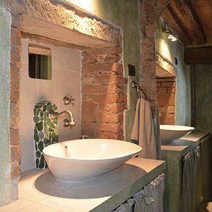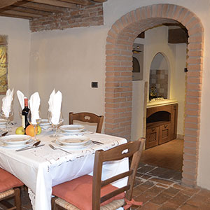 L'appartamento con ingresso indipendente è stato recentemente ristrutturato, valorizzando le caratteristiche storiche mantenendo i materiali originari in cotto e pietra.