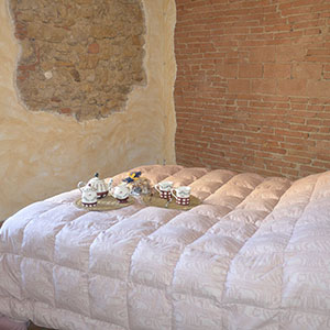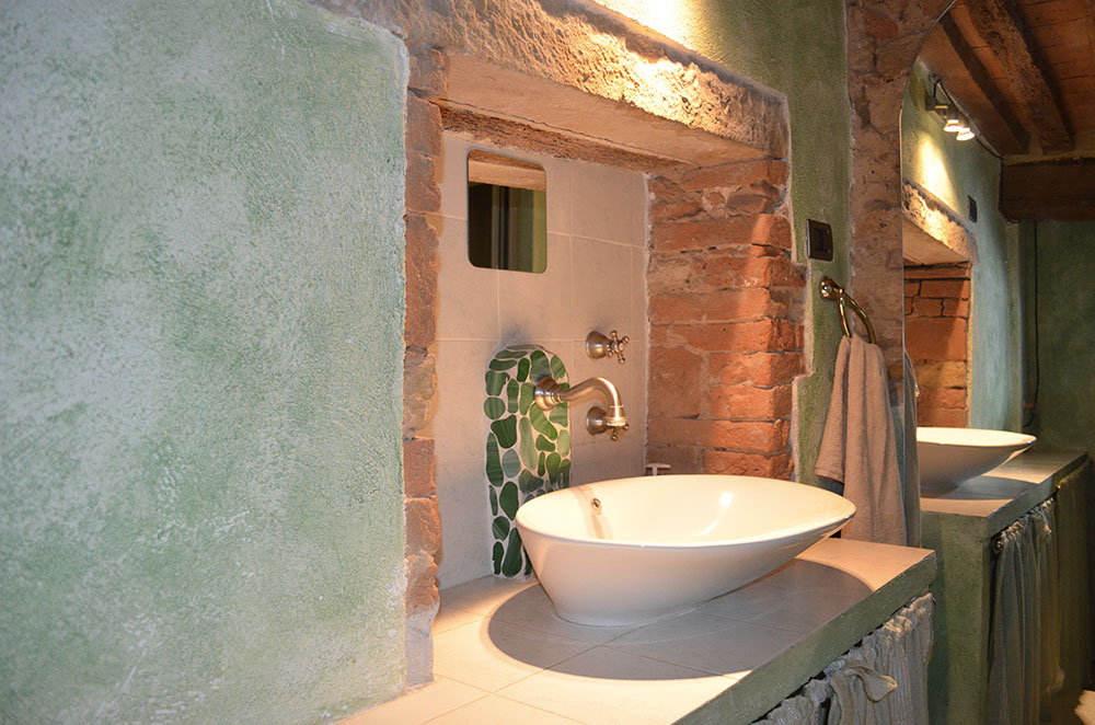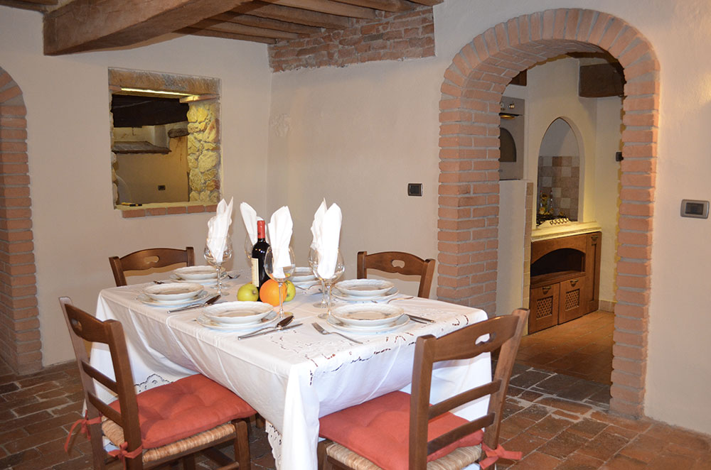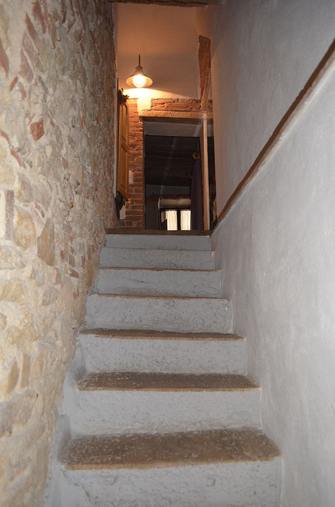 L'appartamento con ingresso indipendente è stato recentemente ristrutturato, valorizzando le caratteristiche storiche mantenendo i materiali originari in cotto e pietra.